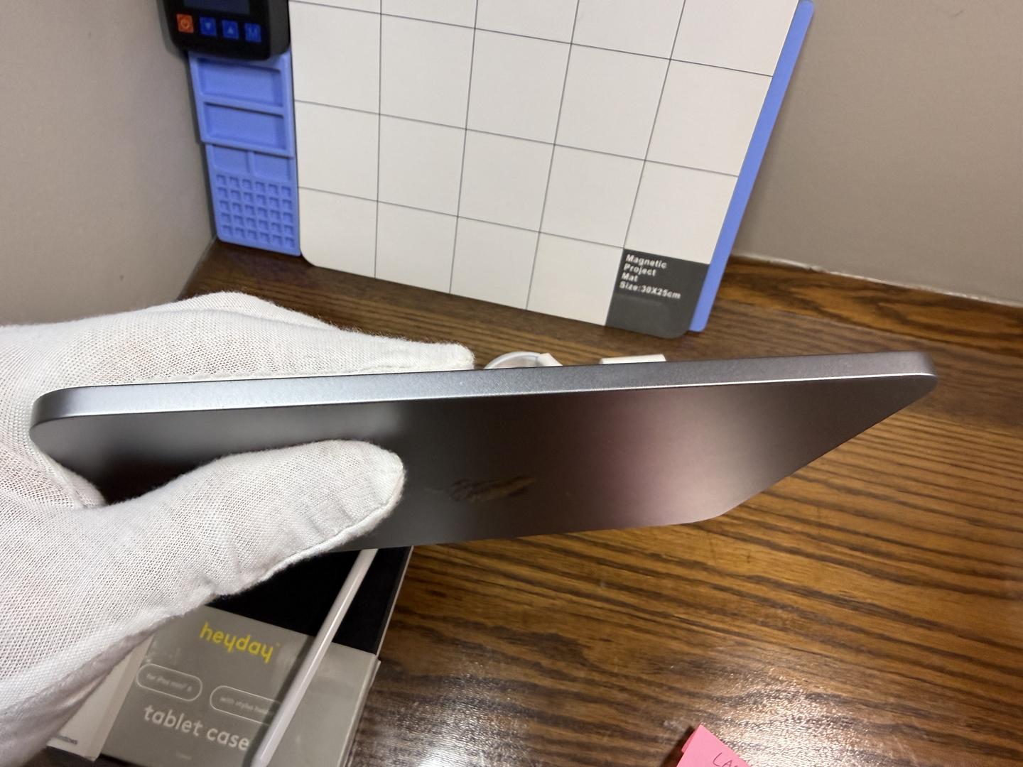This is MINT condition. I see no signs of wear. Battery only has 13 cycles and it is at 100% capacity. Comes with NEW cord, NEW charger, NEW installed tempered glass screen protector, NEW $20 Heyday case, and NEW $20 secondary market stylus/pencil!