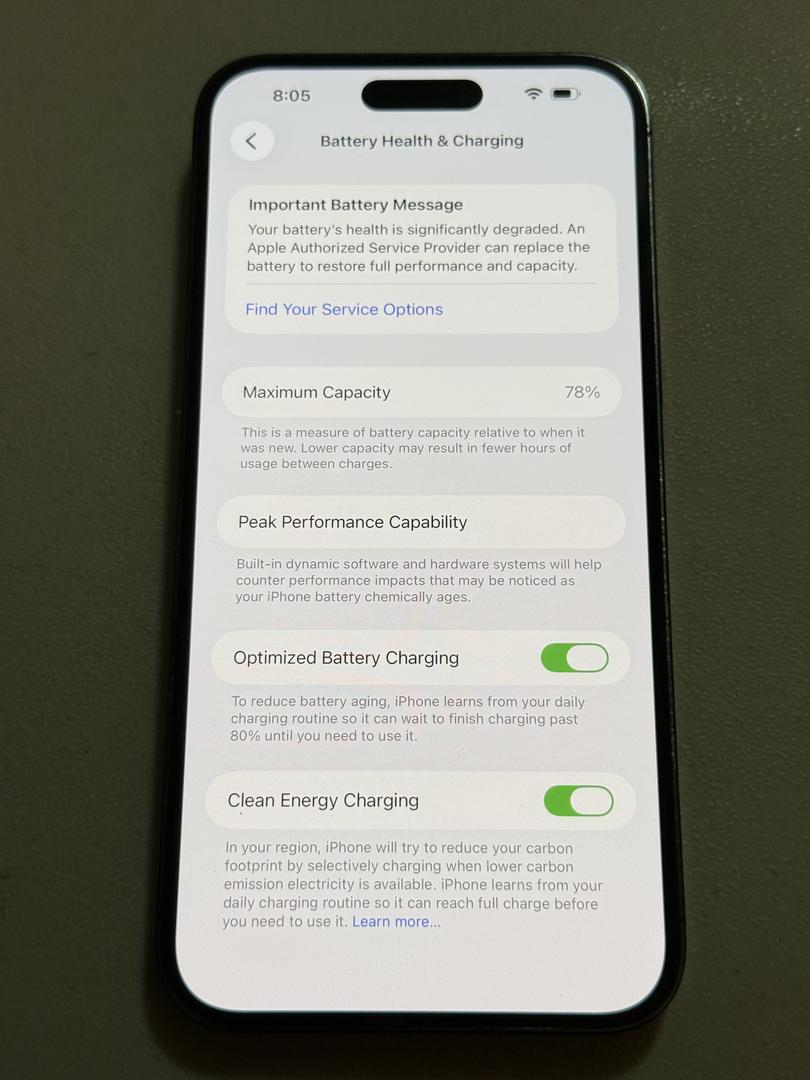 Battery Health 78%