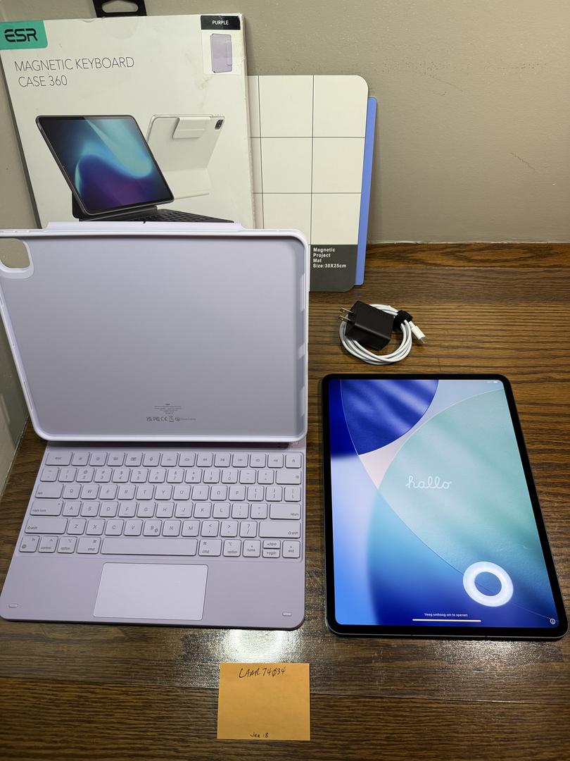 The is for use with any carrier or just use it with wifi. It is in MINT condition with 100% battery health. Only 16 cycles on the battery. It comes with the ESR keyboard, the stylus, a NEW Anker charging brick, and an Apple USB-C cord!