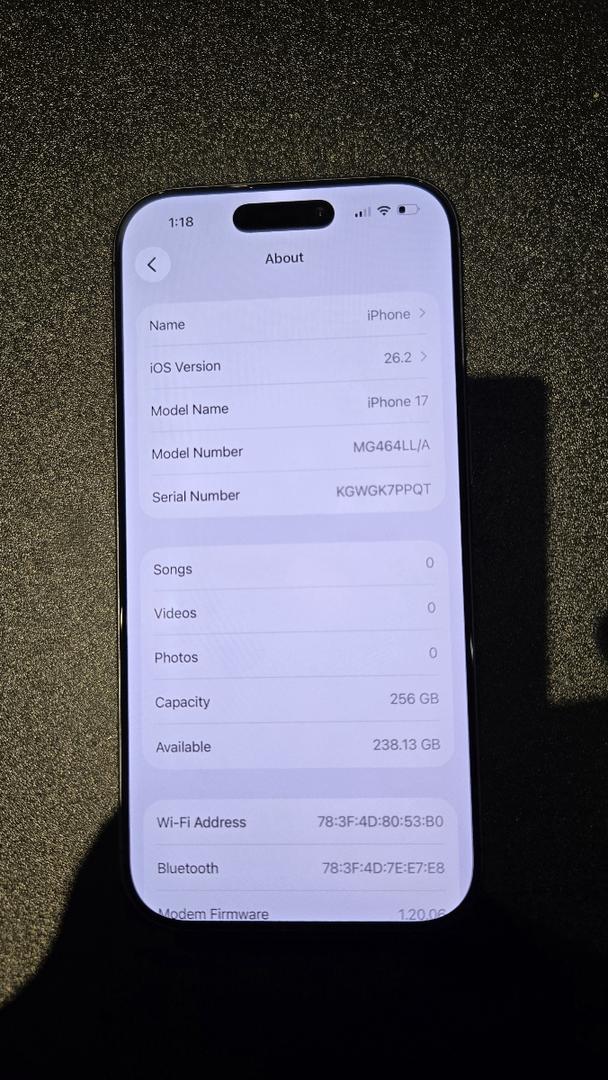 Up for sale is a like-new iPhone 17 (256GB) in Black Titanium. This device was first used in October 2025 and has been meticulously cared for. It is unlocked (No SIM restrictions) and ready to be used on any carrier.