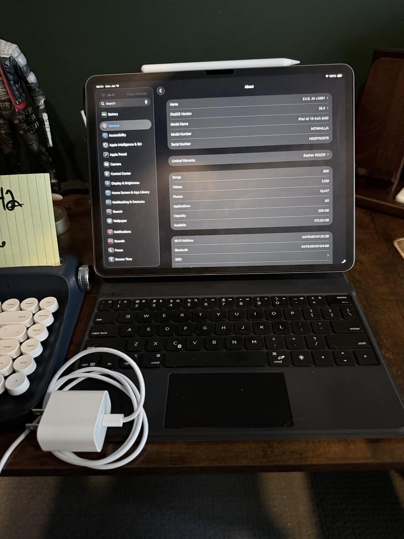 iPad Air 13" (M3) with original charging adapter/cord.