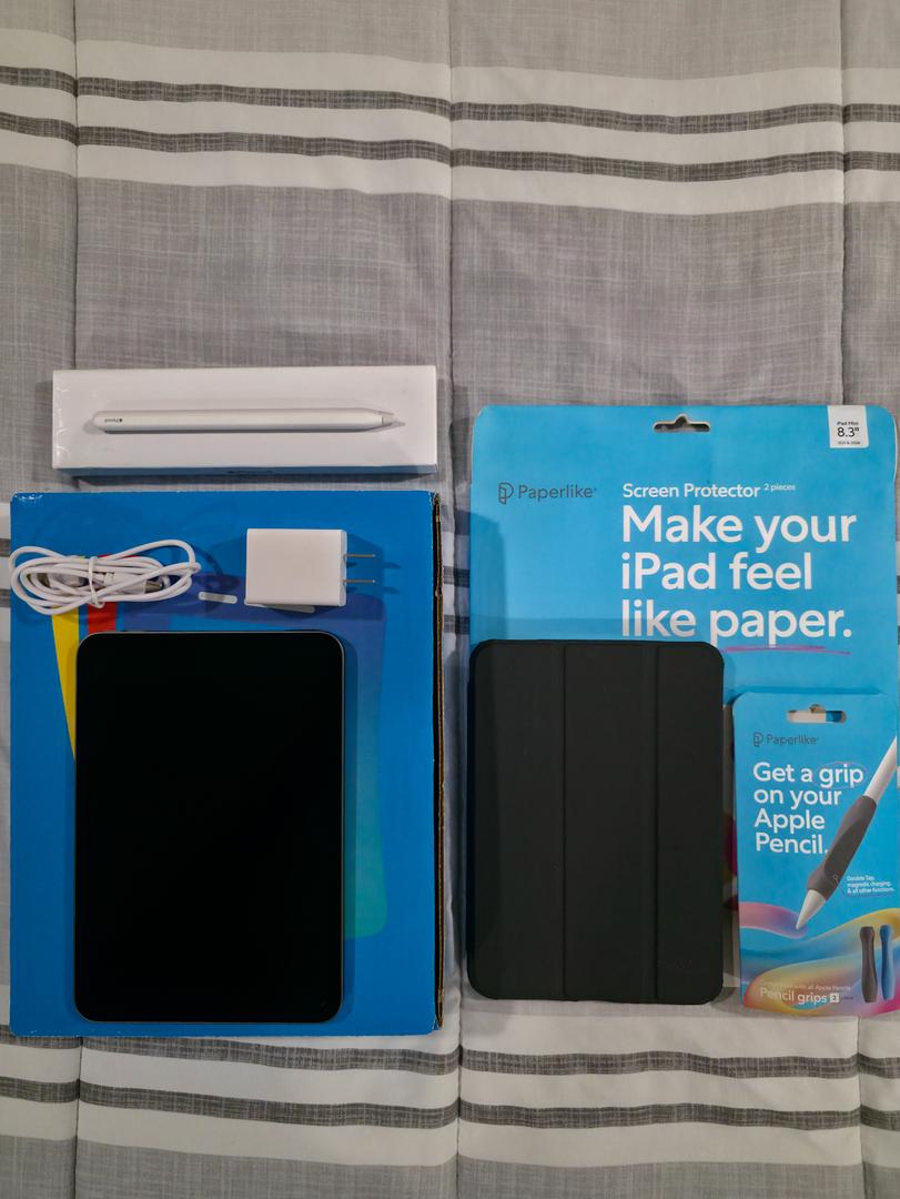 iPad Mini 6th Gen - Apple Pencil (2nd Gen), Paperlike Screen Protector, Pencil Grip, & Case included