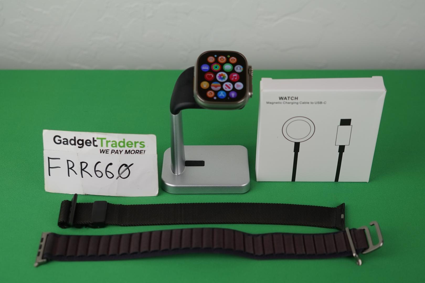 Apple Watch Ultra 2, aftermarket charger, two bands. Device only unless pictured.