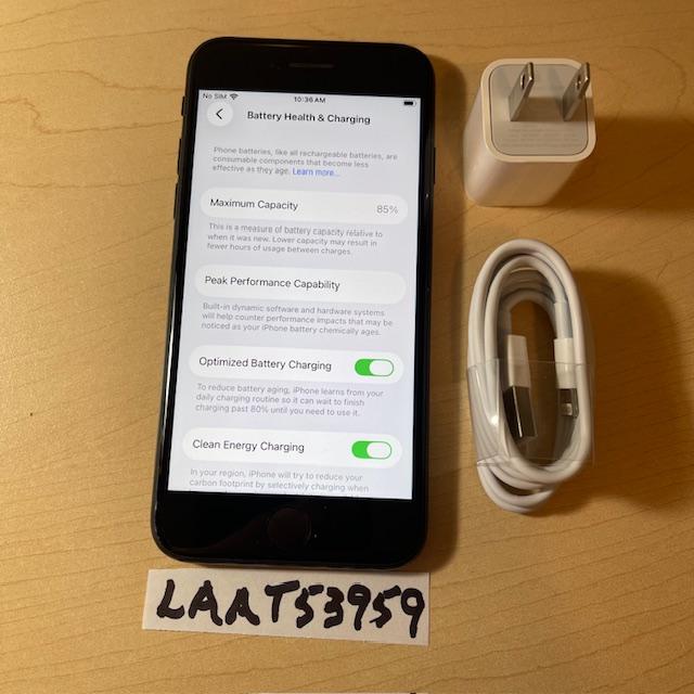 We have an unlocked iPhone SE 2nd generation 128GB Black (these are actual pics) Battery health 85%. Fully operable, no alterations, has original components, with a clean IMEI, no iCloud locks, no find my phone lock, fully operable, ready to activate.