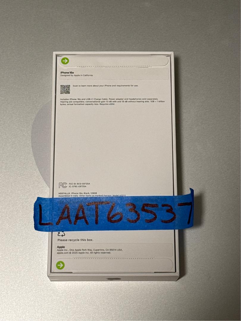New iPhone 16e in box. Top of seal has slight damage so the platform wouldn’t let me list as new but the phone is indeed new in box and has never been activated.