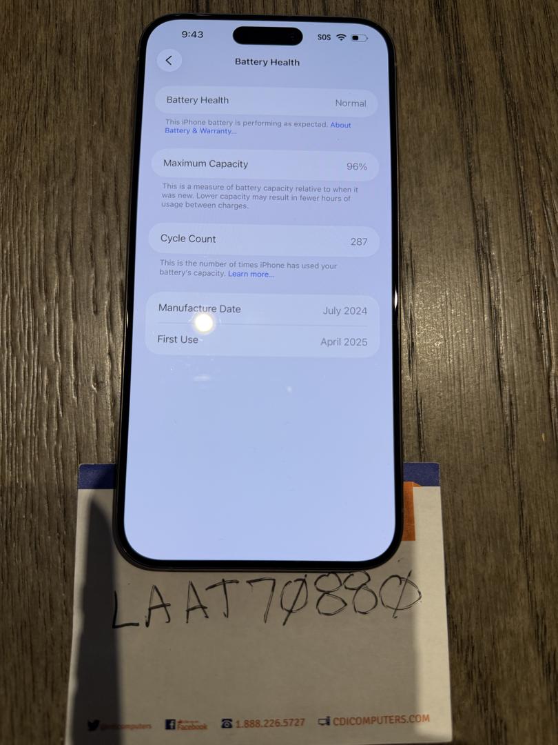 iPhone 15 Pro Max – 256GB – Natural Titanium – Unlocked – 96% Battery – Warranty, Box, & Cable