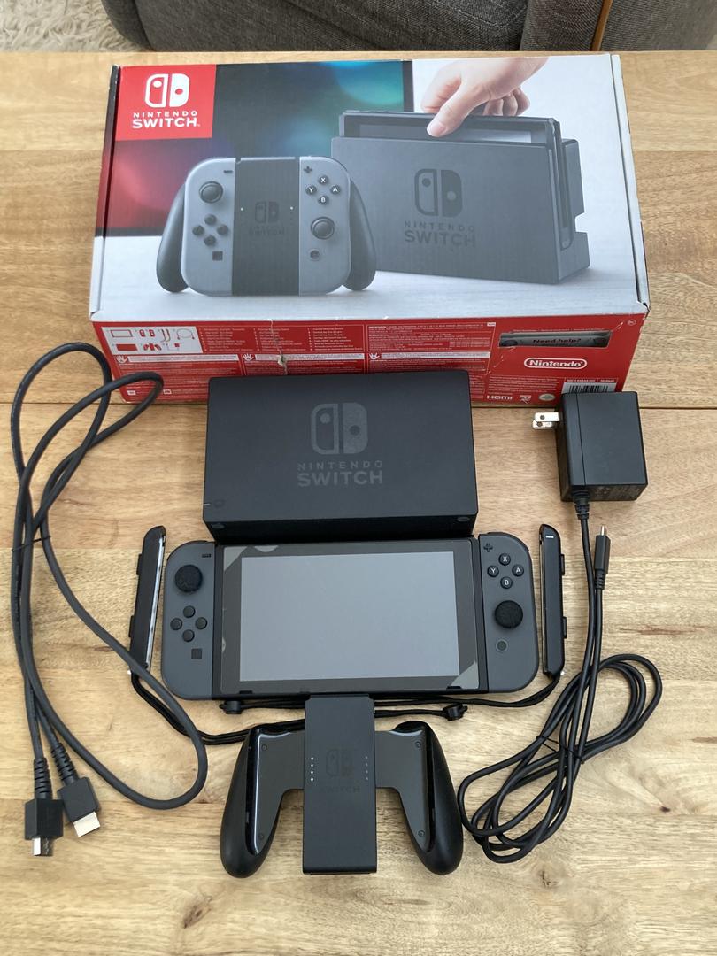 The Switch is in excellent condition with a flawless screen - a screen protector, as seen in the photos, was used during its entire lifetime - and the slightest of wear on the kickstand. Along with the Switch, you will receive everything included in the original box (Joy Cons, Joy-Con Straps, High Speed HDMI Cable, Dock, Joy-Con Grip, AC Adapter).