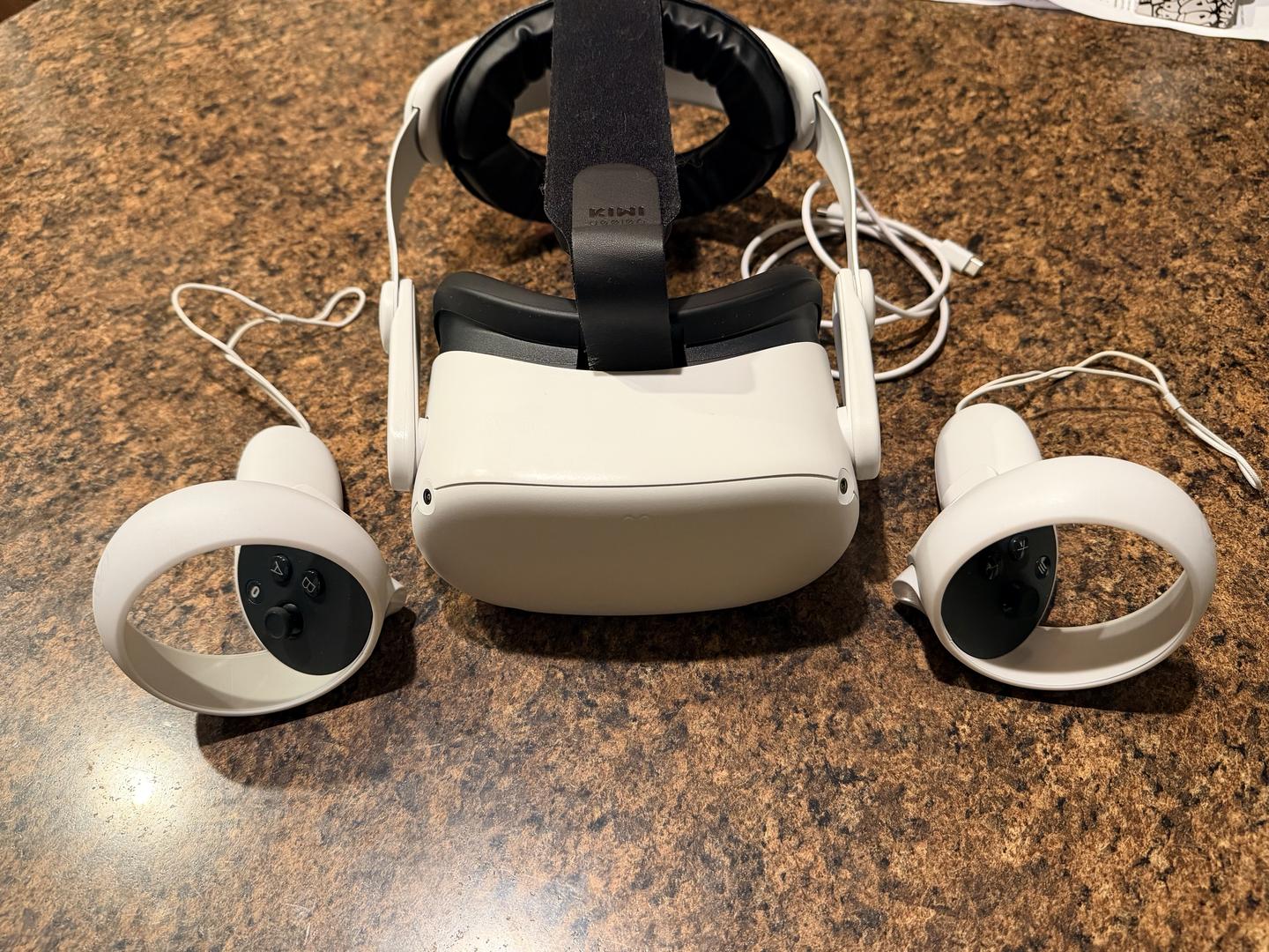 Mint and lightly used. Includes a Kiwi comfort head strap, charging cable, and glasses spacer. Both controllers as well. Freshly cleaned and was always stored in a protective case. I'm selling because I upgraded to a Quest 3.