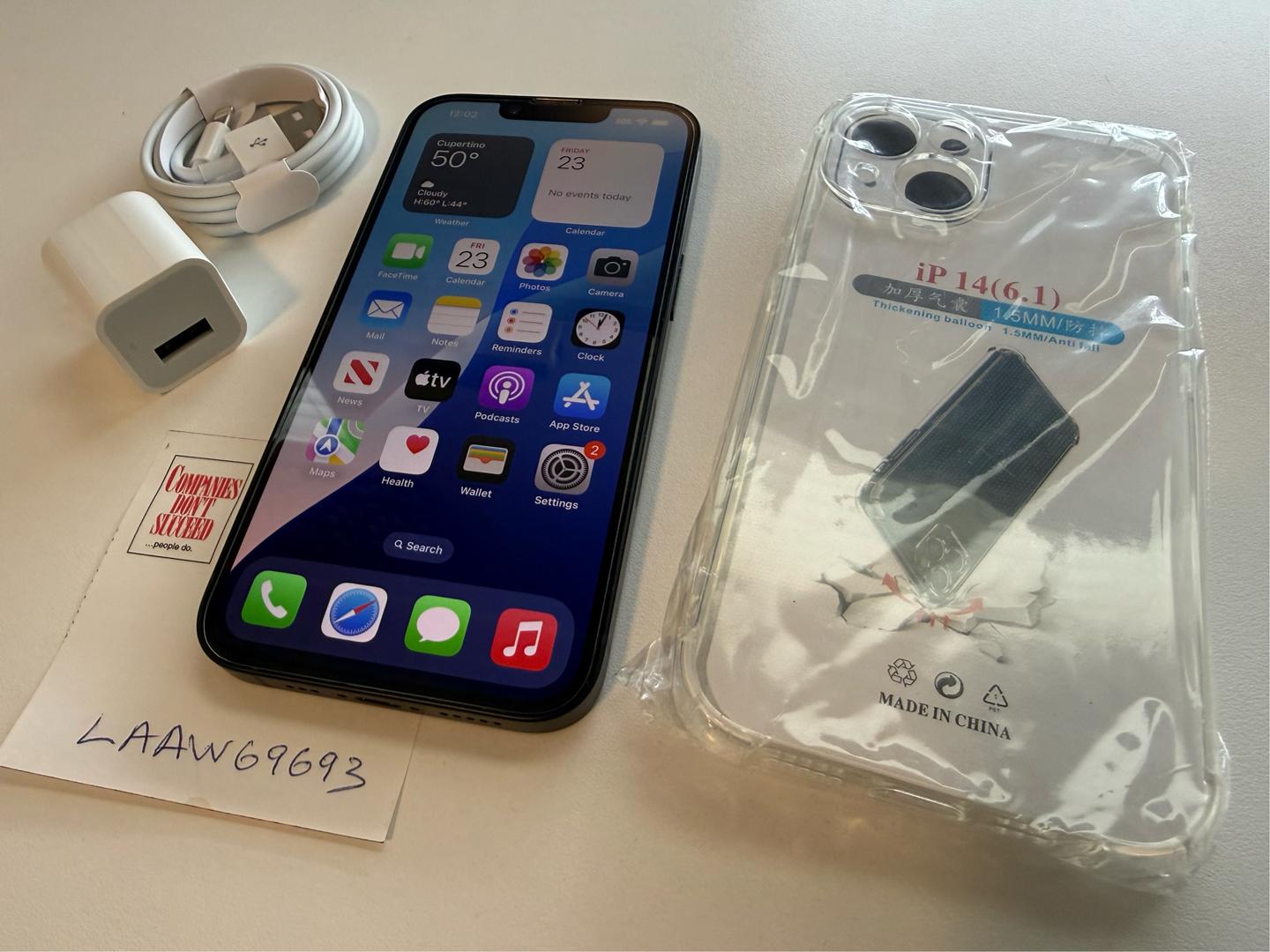 Please note: this iPhone 14 does not come with its box and accessories. It comes with a complimentary new cable, wall charger, already applied tampered screen protector and a new clear case. Please see images for details.