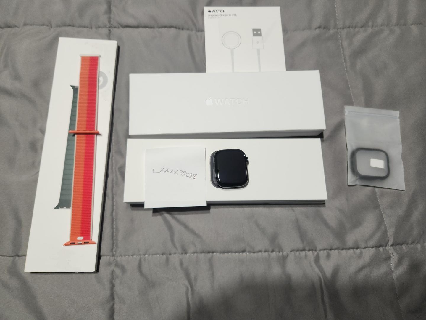 Selling a mint condition Apple Watch Series 10. Purchase in December 2025 and no longer using it. The screen is flawless with no scratches as the watch has been in the case since purchase. Comes with watch, original box, band and charger. Included in this sale will be three extra bands, an extra Apple Watch charger and a bumper case. Please see images and contact me for any questions.