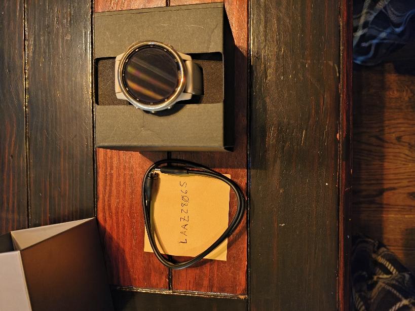 Was used only for workouts never for races. comes with extra band, box and charger cord.