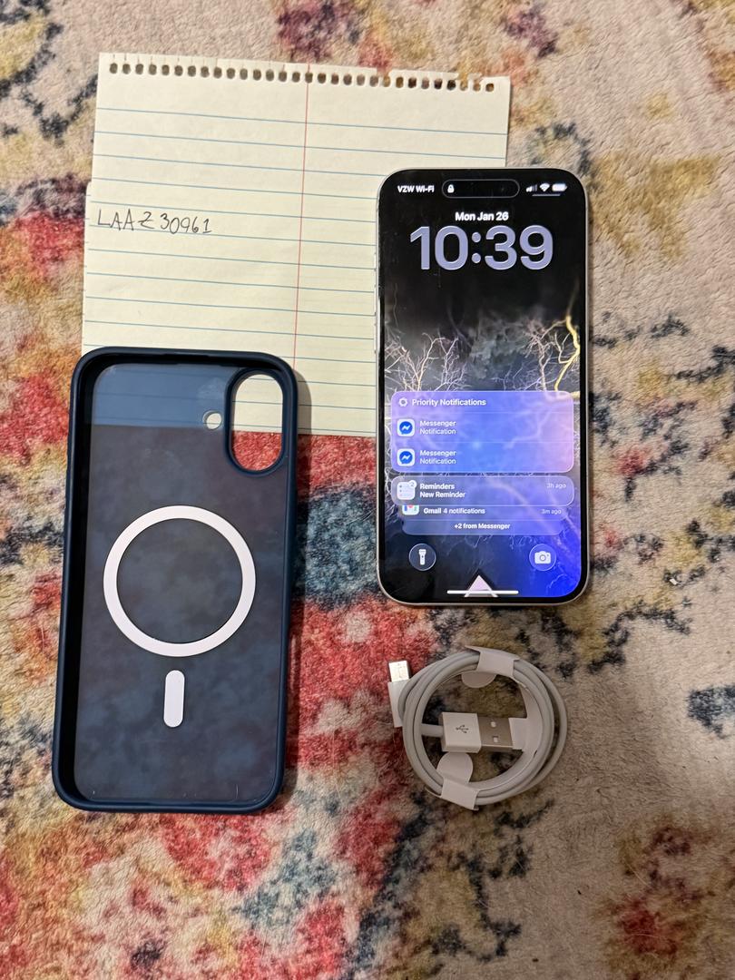 Iphone 16 plus. My company bought me a 17. This phone is in great shape.carrier is Verizon but it’s unlocked to use anywhere