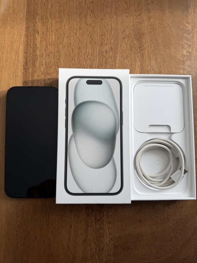 Excellent Condition Black iPhone 15 128GB Factory Unlocked with Retail Box and OEM Charger