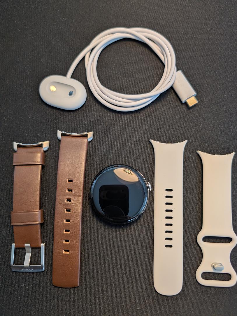 Google Pixel Watch 4 (45mm) LTE - Silver - Mint Condition w/ Nomad Leather Band