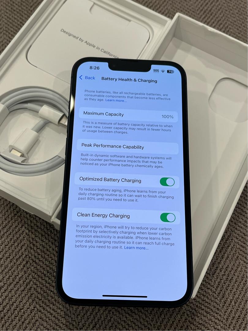 • Battery health: 100% (original battery)