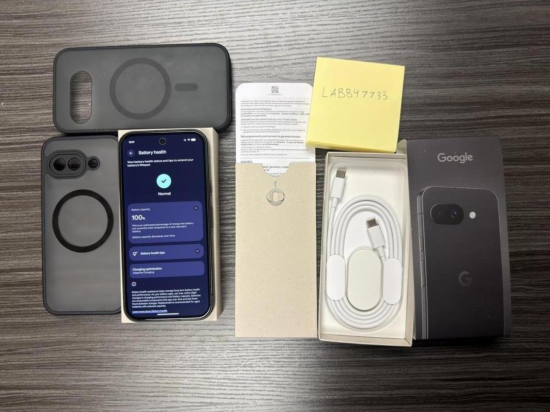 I am selling a 128gb Obsidian Google Pixel 9A with original packaging, cable, and two cases. The phone is in great condition, other than minor scratches on the camera lens (pictured) which does not impact functionality. Battery health is 100%, and there is a tempered glass screen protector already installed on the device. This device is CARRIER unlocked. Originally purchased through Spectrum Mobile.