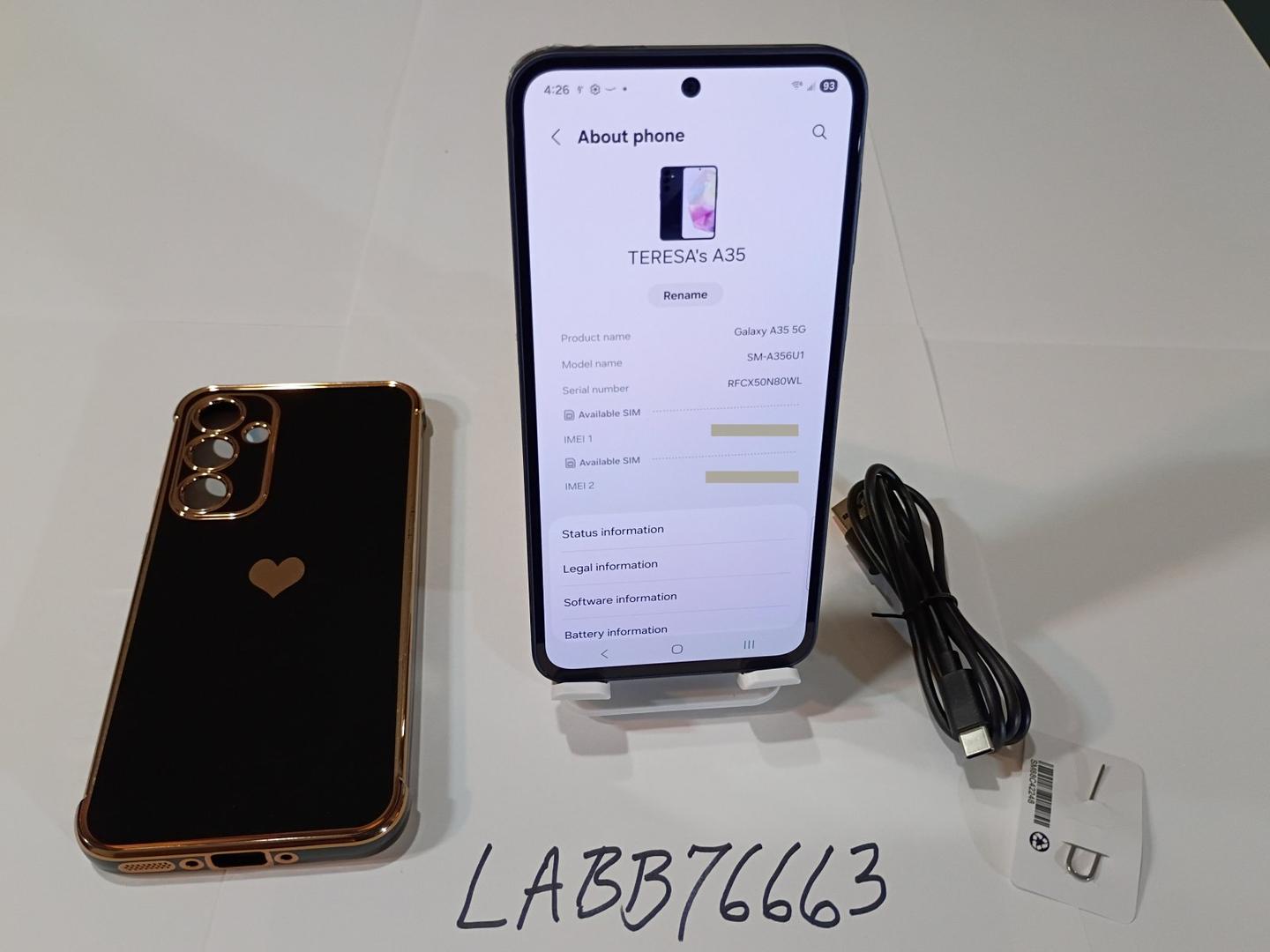 Mint Condition - This is a one owner Samsung Galaxy A35 5G my wife purchased NEW Oct, 2024. It has always been in a LeYi Case with an applied HD Screen Protector. A charging cable is included. Samsung did not include the charging brick with this model. The phone shows no signs of use, scratches, or marks. The phone is fully functional and still has great battery life. I removed the screen protector (my finger prints, my dirt), and will ship the phone packaged well in foam and double boxed.