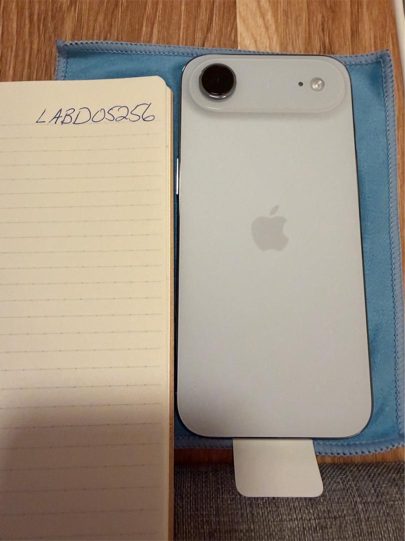 100% battery health, 10 charging cycles iPhone Air in Sky Blue. Mint condition. Comes with unused clear magsafe case, spare screen protectors (one installed) and an unopened/unused magsafe battery. I ship to Paypal registered addresses. No offers, please.