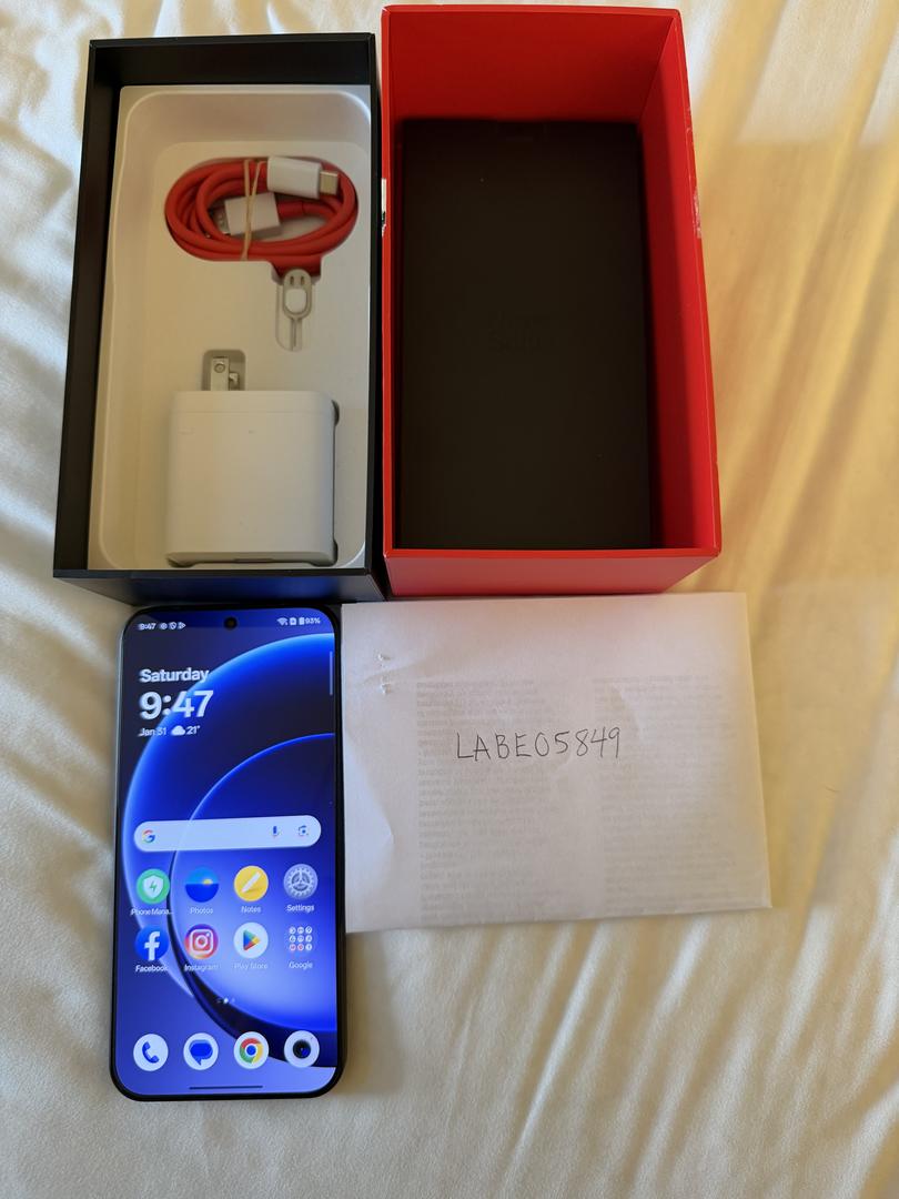 Mint condition Oneplus 15 including box, usb charging cable, and charging brick. Device was purchased directly from Best Buy. Device has original screen protector on front screen. Let me know if you have any questions or photo requests.