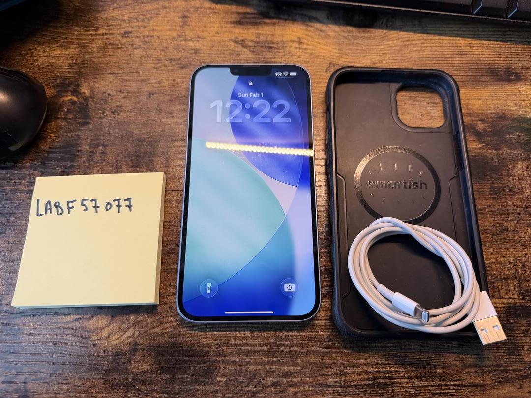 Super clean Iphone 14 plus, includes lightning cable and smartish magsafe case