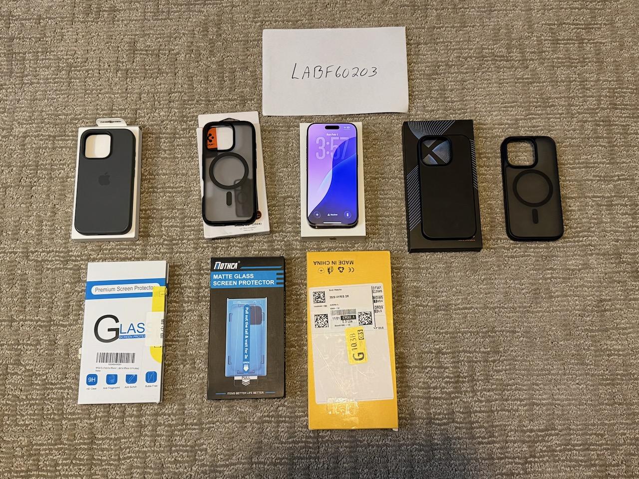 Mint iPhone 16 Pro 512 GB Natural Titanium with 4 cases, 3 screen protectors, and original packaging