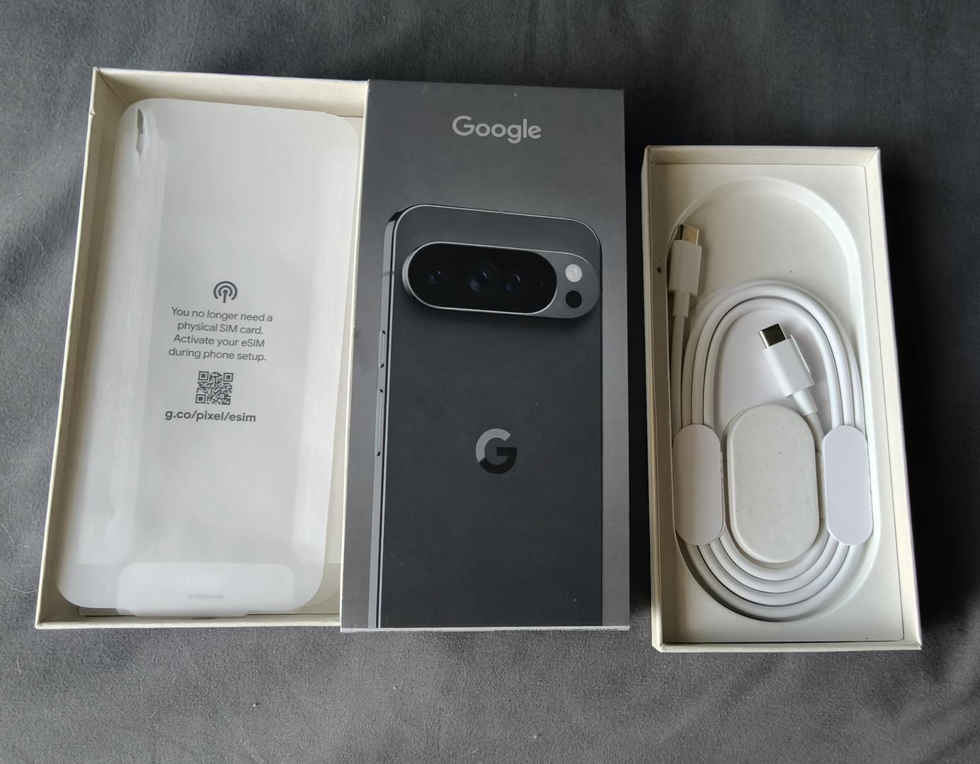 Google Pixel 10 Pro XL w/ original box, charging cable and Latercase aramid fiber (Midnight) case ($59)