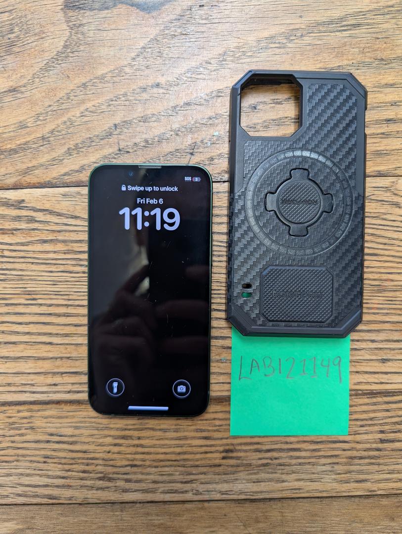 iPhone 13 Mini Green. The phone comes with a Rokform Rugged Case. Case retails for 59.99. Magnetic case and military grade protection. Designed in Irvine CA. The phone functions well, is unlocked, and in good condition. I have had no issues with the phone. It is a great size and quite durable with the Rokform case.