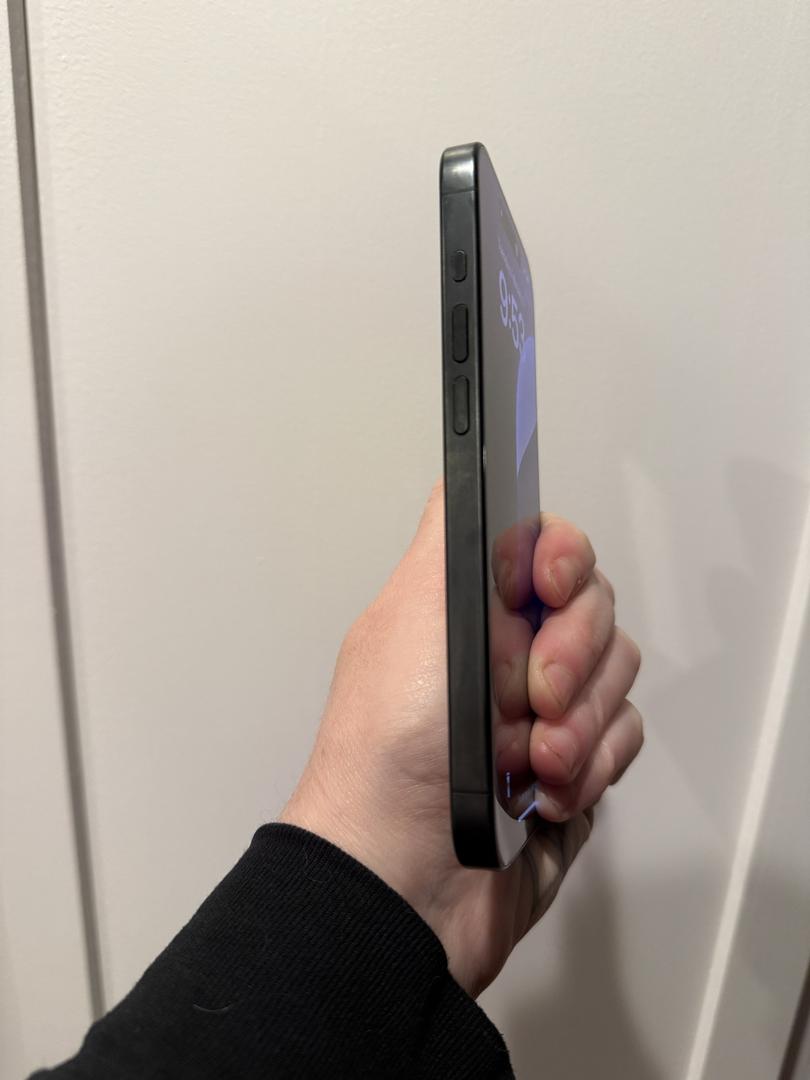 Selling a good condition unlocked iPhone 15 Pro with 256gb storage, color is black titanium and comes with a Heyday black case