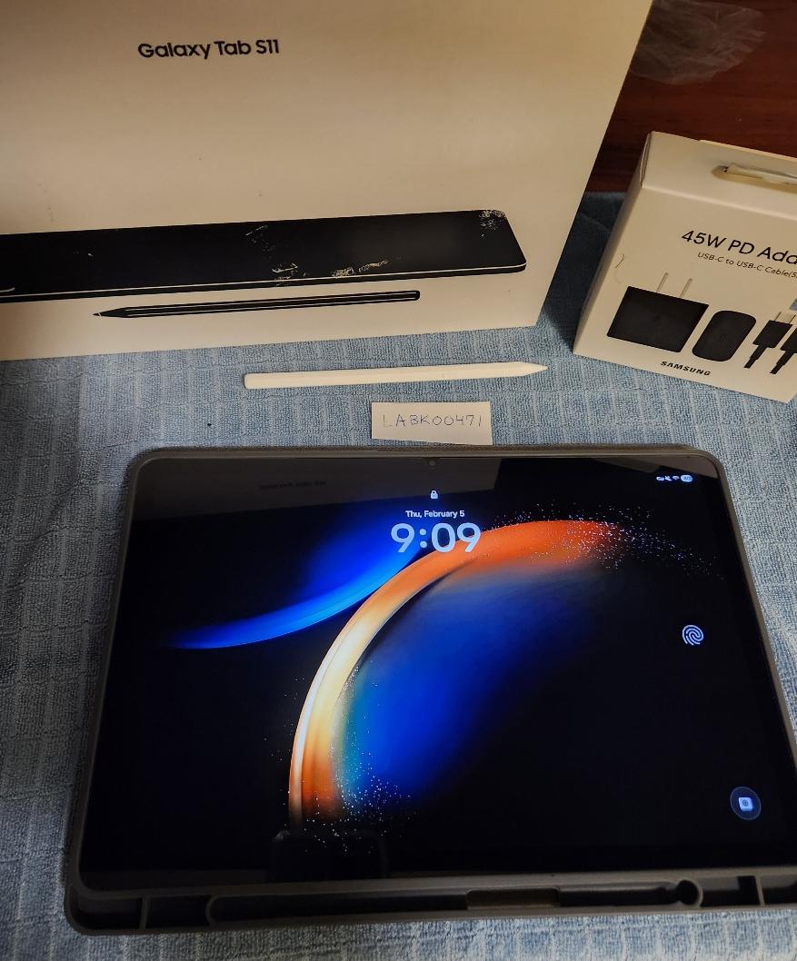 This device comes gently used. No visible scratches or dents on the tablet or the screen protector. The bottom left part of the screeen protector has a minor air bubble see picture but can be removed if you prefer. Battery was protected by mostly charging to 80% and didn't go under 20% often. The S-Pen, charging cord with included wall adapter (add value not sent with typical Samsung Purchase), screen protector, folio stand case, and the original box is included in this listing.