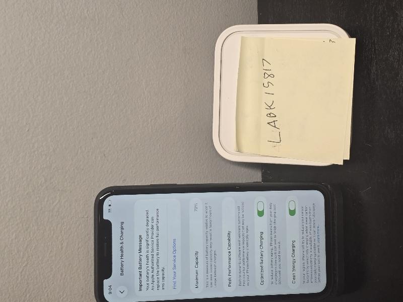iPhone 11 64 GB Black in Good Condition, Scratches and scuffs on screen, back and sides. Damage is pictured and purely cosmetic. Battery health is 79%, unlocked for use with any carrier. IMEI is clean and ready for activation. Kept well in screen protector and case.