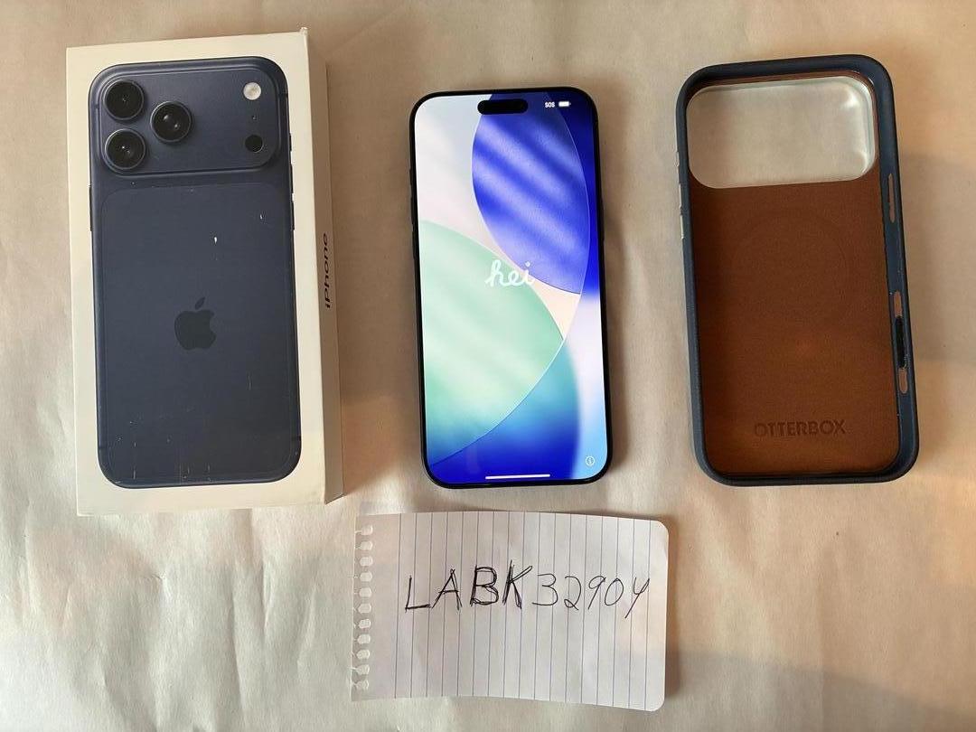 This is an Unlocked Apple iPhone 17 Pro Max in Deep Blue with 1TB. It has been well cared for and is in mint condition. The battery health is at 100%. The battery is at 22 cycles. It comes with the original box and charging cable. It also comes with an OtterBox Symmetry Series Cactus Leather case in Blue Sentiment color. I ship UPS Ground with signature required. Thank you.