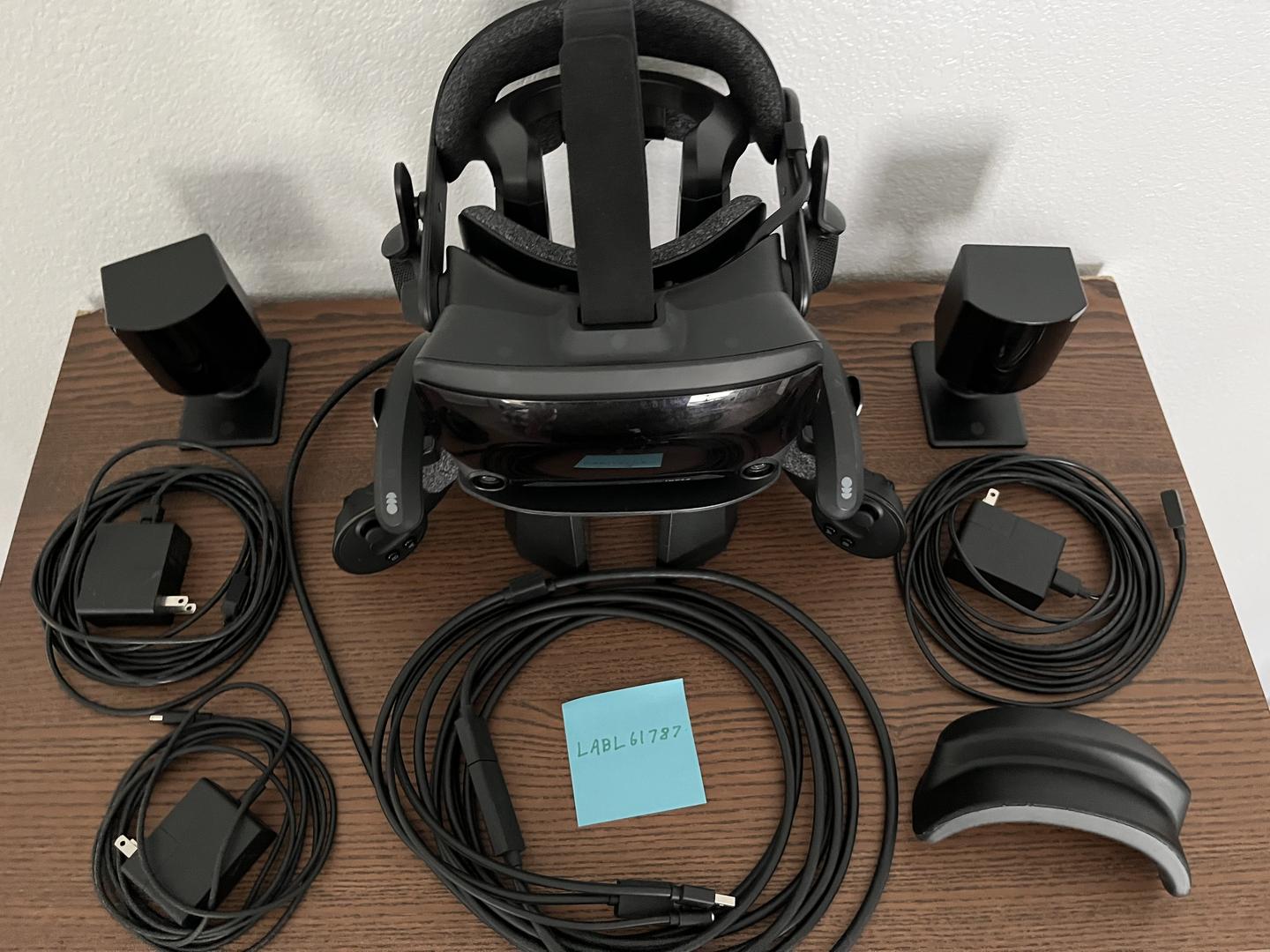 Includes headset, 2x base stations, headset cables, power cables, power adapters, controllers, headset spacer, and headset stand