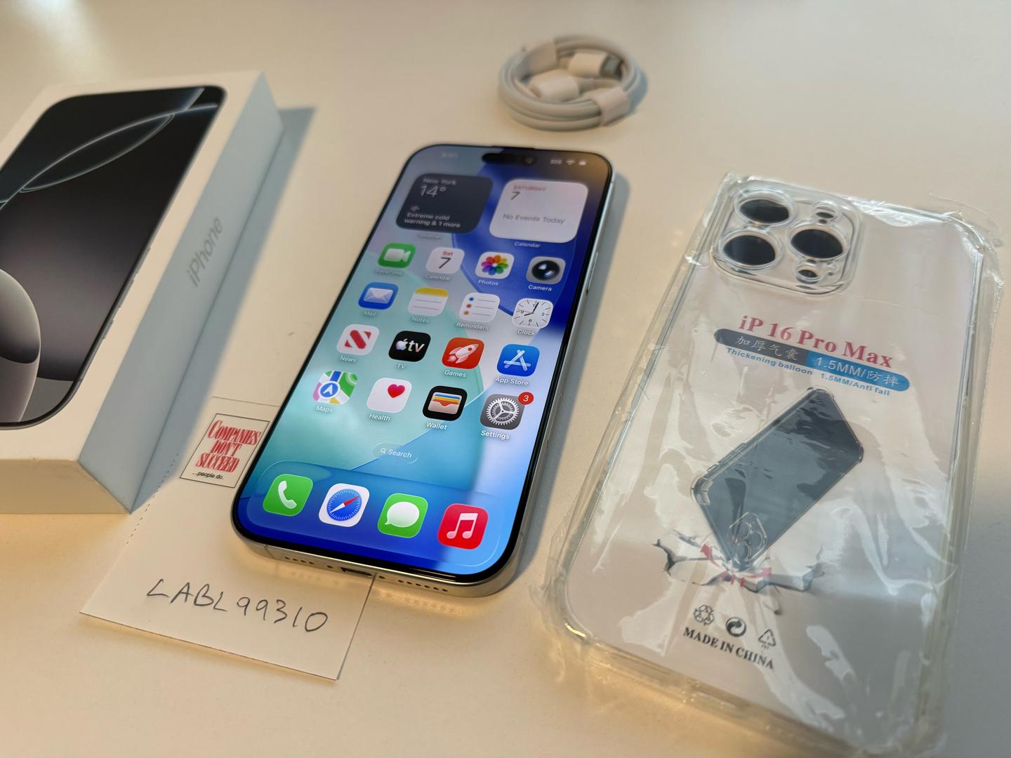 Please note: this iPhone 16 Pro Max does come with its box. It also comes with a complimentary new cable, already applied tampered screen protector, and a new clear case. Please see images for details.