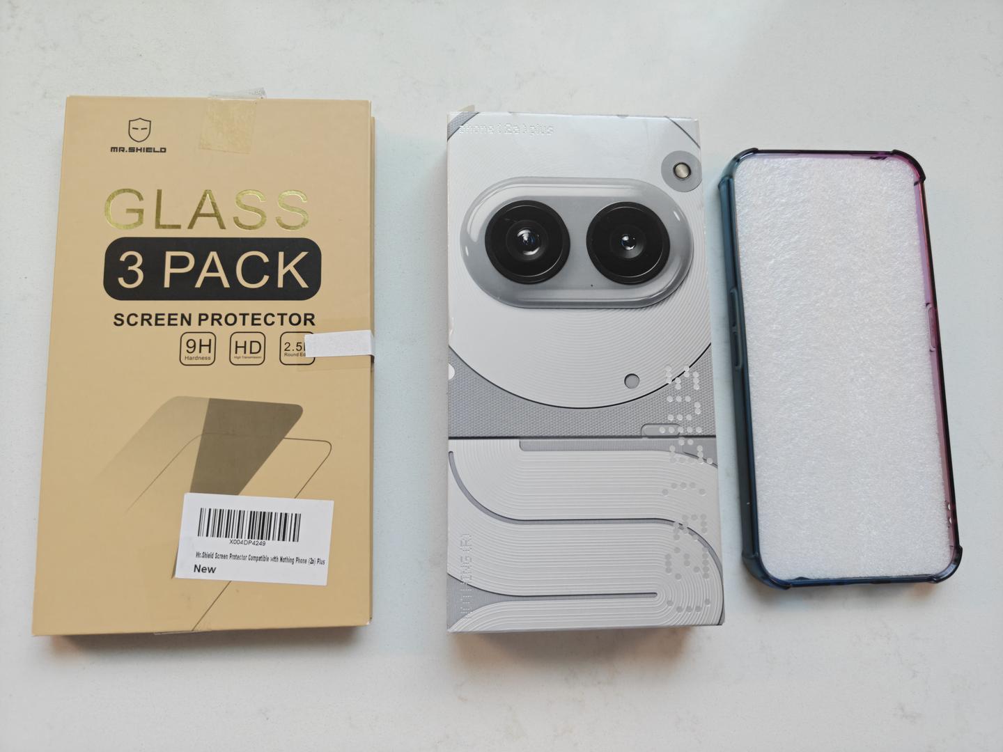 Includes original box, manuals, and a couple of bonus accessories, such as the original Nothing USB Type-C cable (new and unused), a case (lightly used), 2 brand-new, unused glass screen protectors (+1 pre-installed), and Nothing glass SIM ejection tool. Charging brick not included.