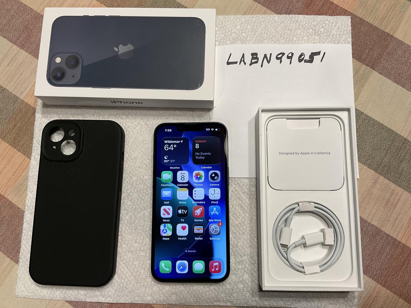 Mint IPhone 13 was only powered on a few times to satisfy unlock requirements and to verify unlocked with another carrier. Phone comes with original box, unused charging cable, sim ejector and case.