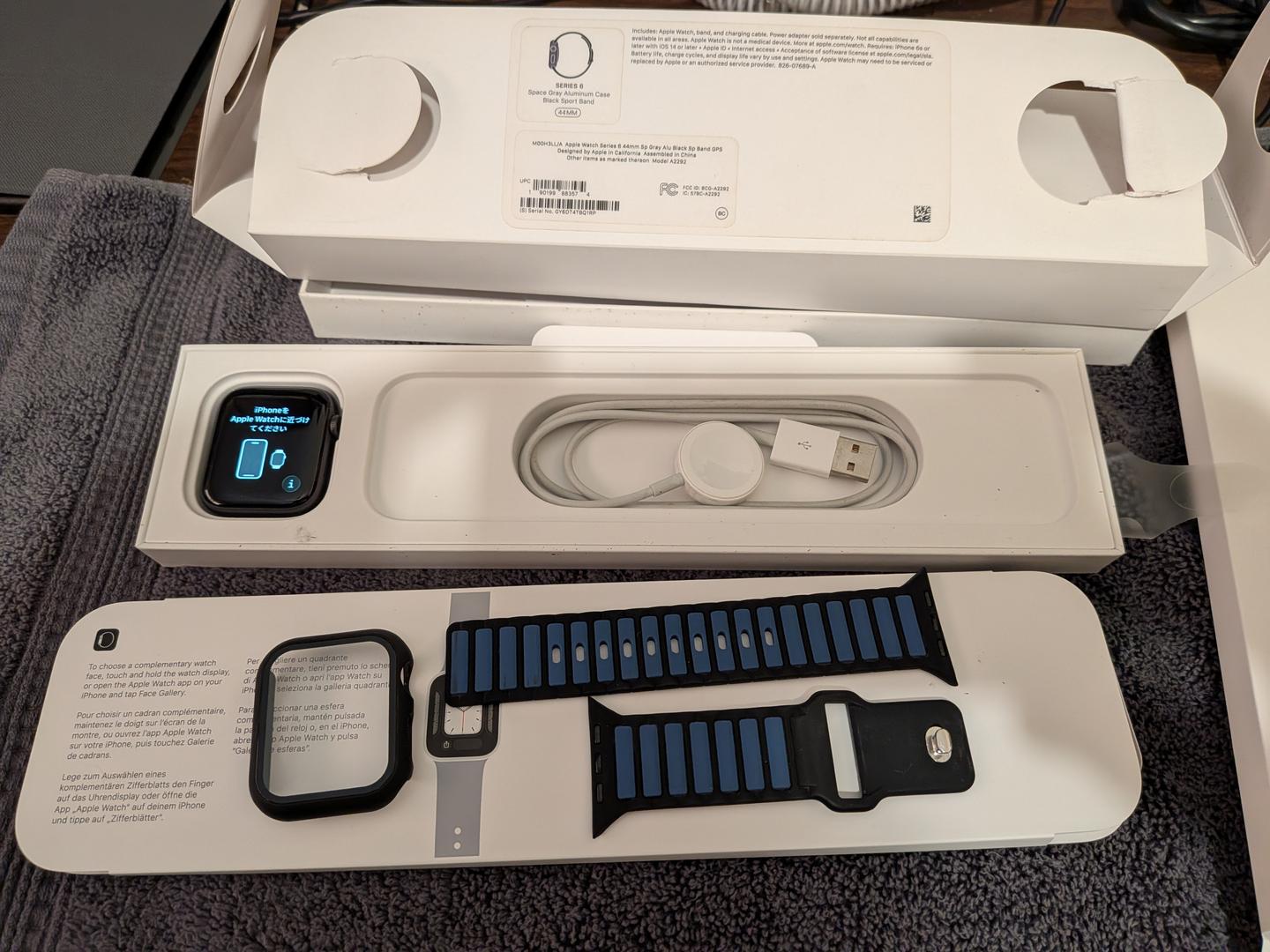 Up for grabs is my Apple Watch Series 6 44mm GPS Alum/Gray, purchased new, one owner (me). It has normal patina wear on the bottom, but the screen and sides are scratch free as it's always had a case/cover. Comes with a newly purchased watch band from 'Amazingzon' also includes the OEM charger and a fairly new case/cover to protect the watch. Battery health is at around 81% and worked for me from 6am to 8pm up until a weeks ago before I erased it.
