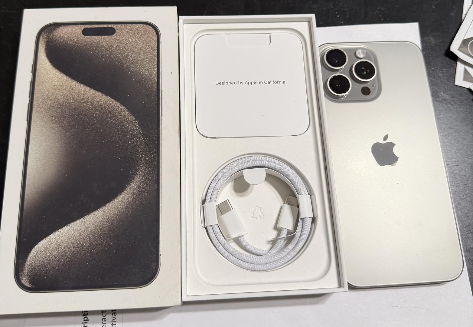 This iPhone 15 Pro Max 1TB in Natural Titanium is in mint condition and has been well taken care of since purchase.