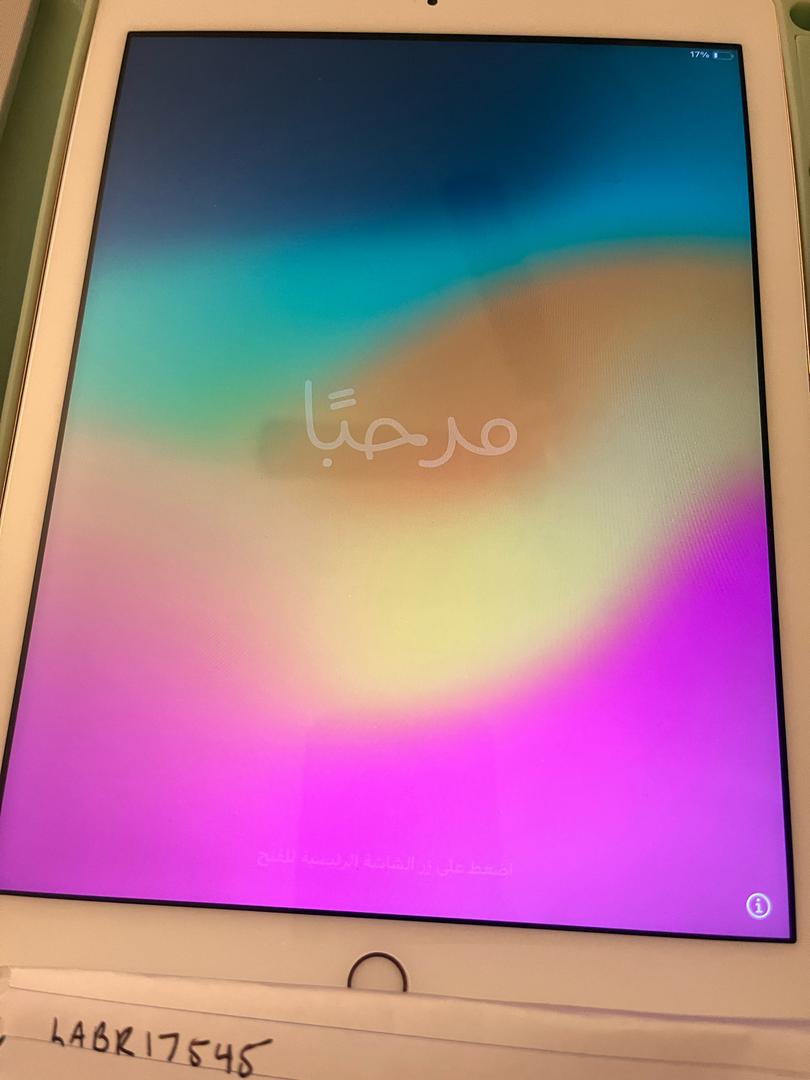 White and gold iPad.. with a foldable mint green case and white keyboard. Used and in great condition.