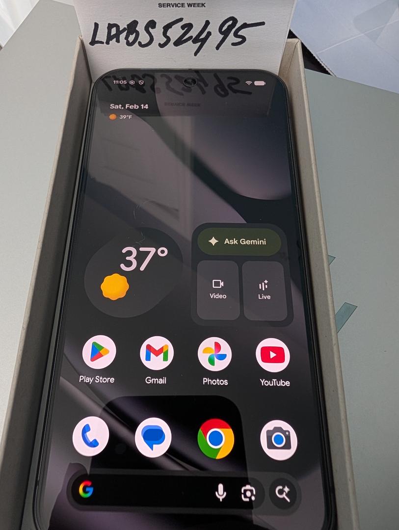Phone comes with Original Box matching IMEI, all paper work, Brand New Genuine Google case and a charger with block.
