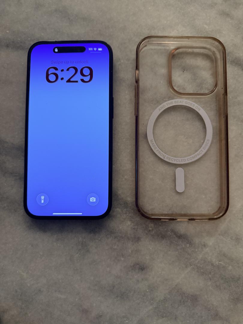 iPhone 14 Pro 128GB (Unlocked). Always kept in a case since purchase. No cracks, dents, or major scratches — only light normal wear. Fully functional with clean IMEI. Battery health is 79%. iCloud signed out and factory reset. Ready for a new owner.