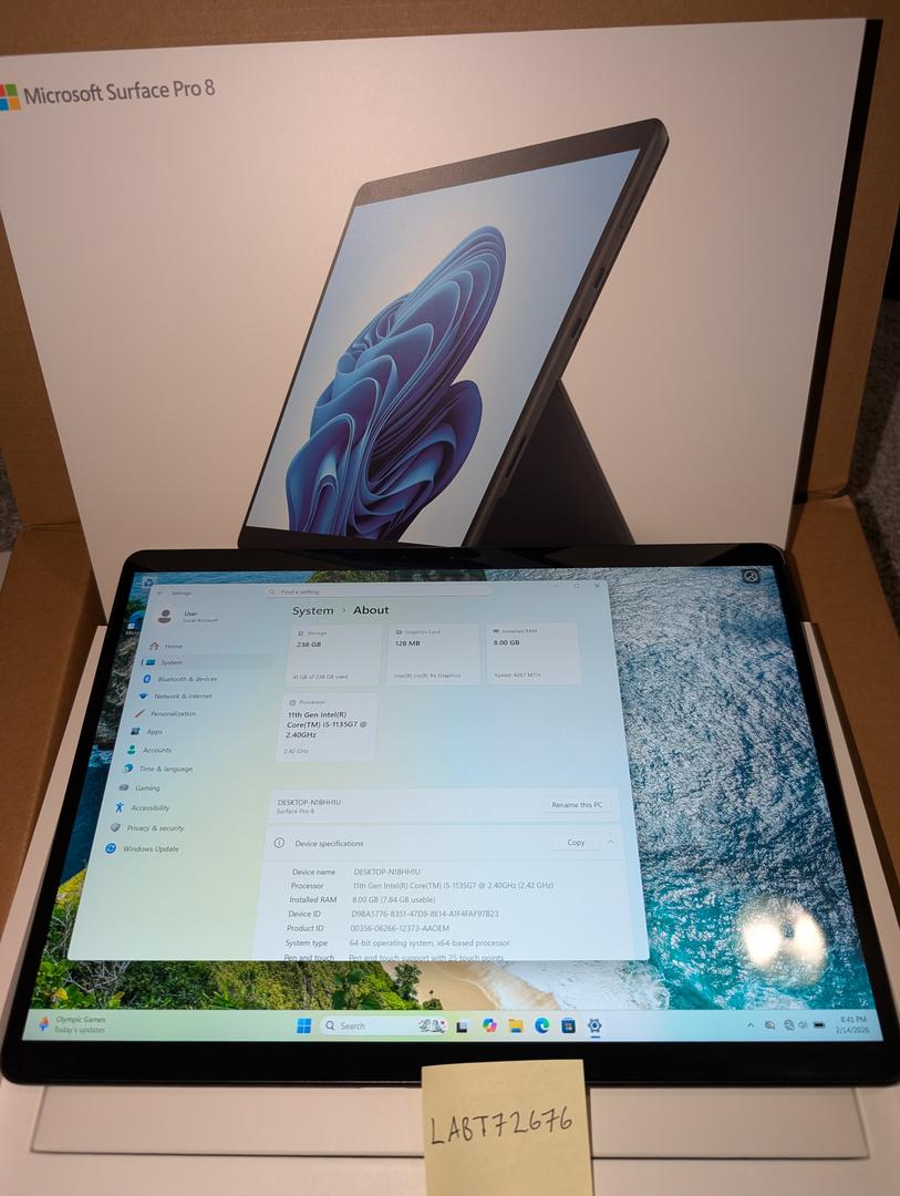 - Surface Pro 8 with Intel i5 processor, 8GB RAM, 256GB SSD