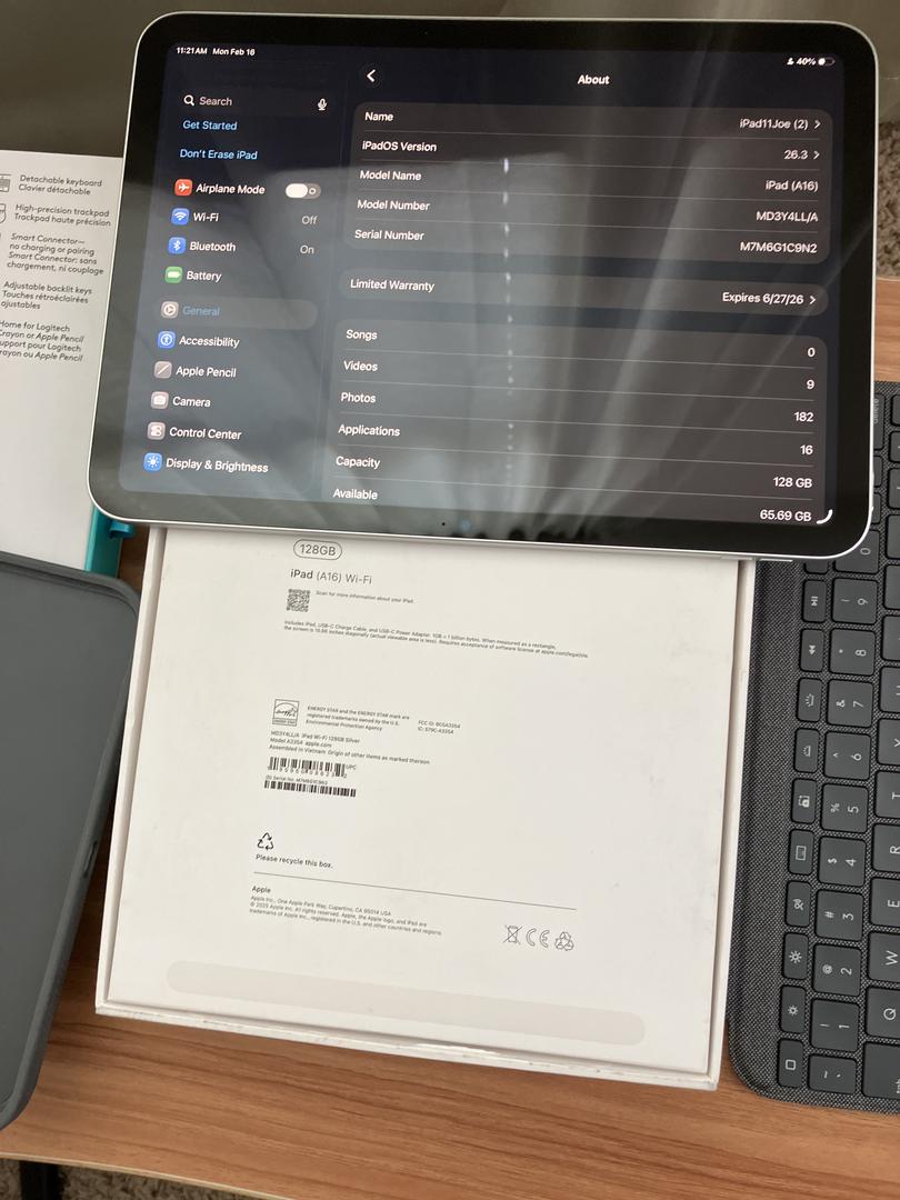 iPad 11th Gen WIFI in mint condition with original box cable and adapter.