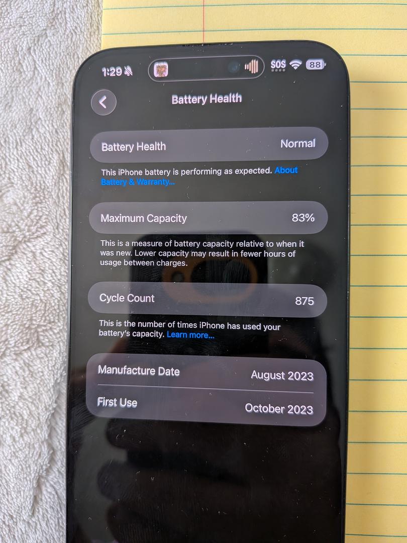 - 83% battery health