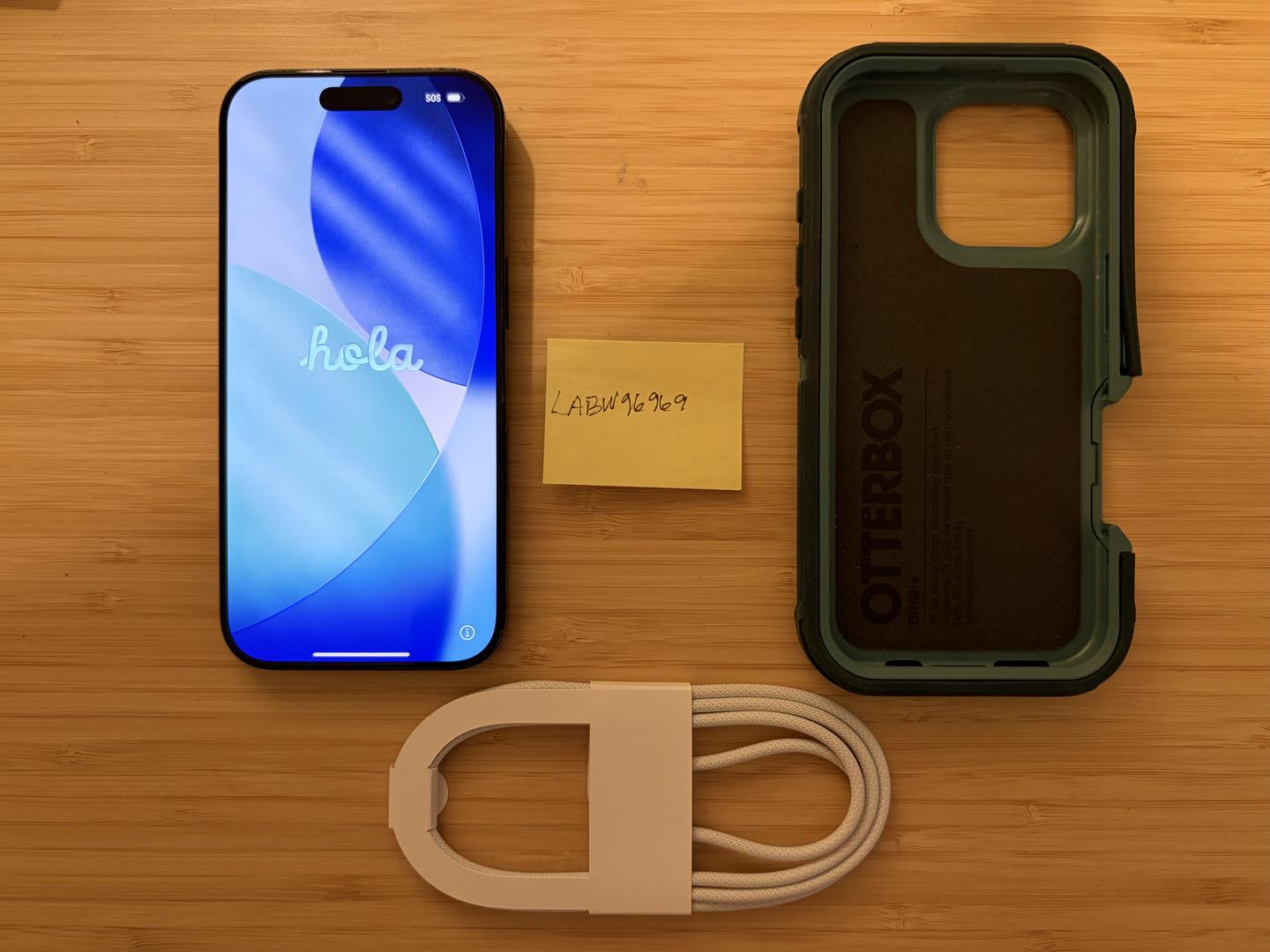 Comes with charging cord and Otterbox Defender case, which it has been in since I bought it.