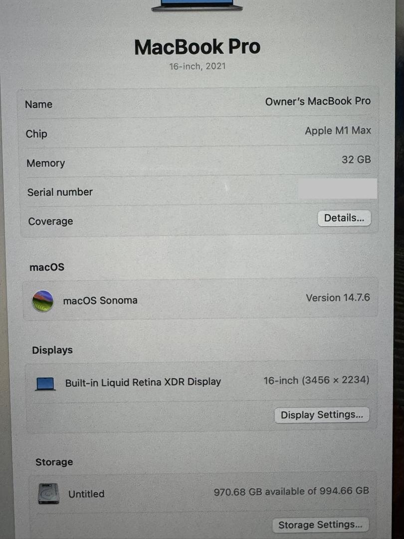 16” M1 Max MacBook Pro 32gb 1TB #855