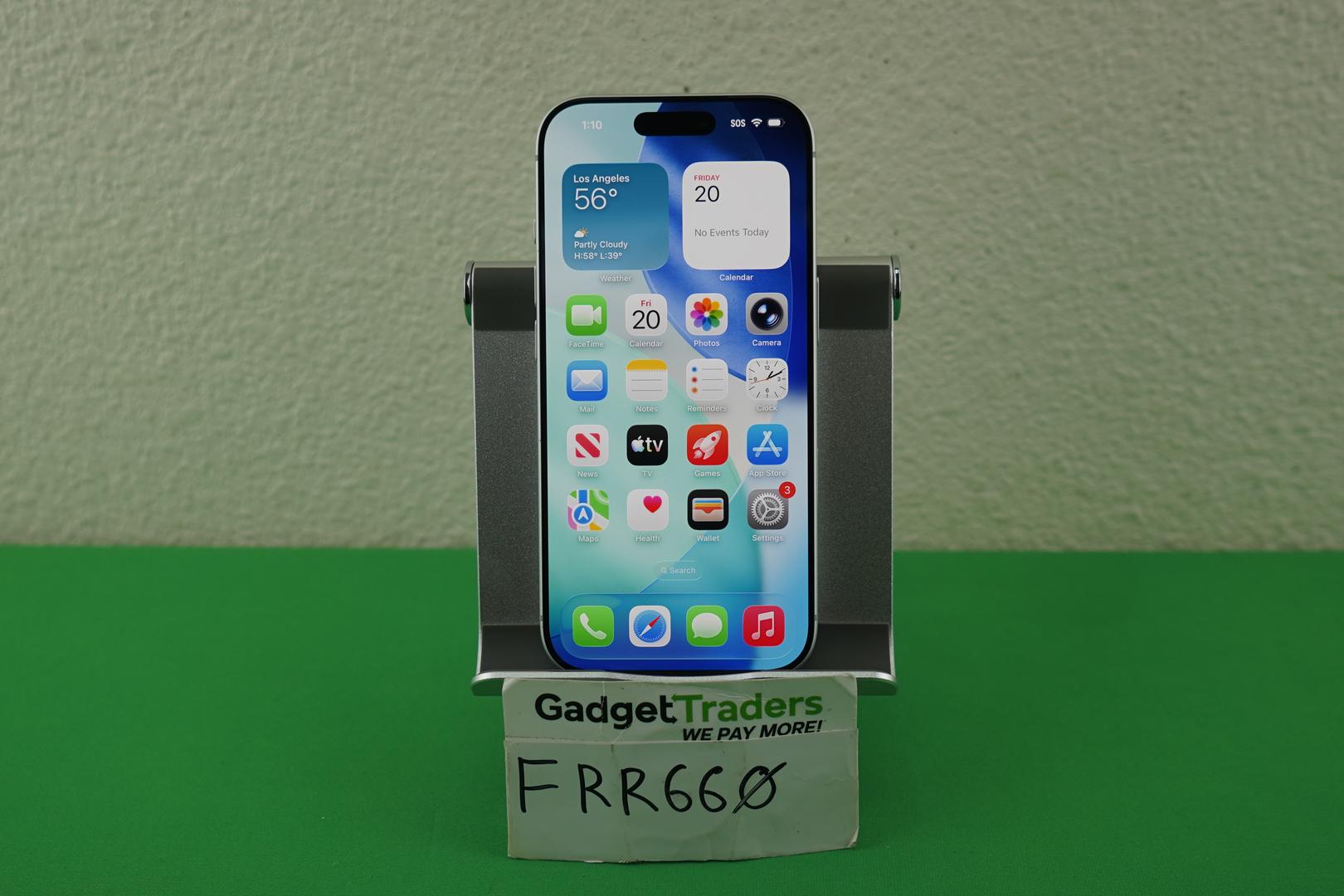 Used and in great working condition. Screen has 2 small scuffs (see photos). Frame has a couple tiny nicks, barely noticeable. Overall great condition. Battery health is 100% with 42 cycles. Locked to AT&T. Still under Apple standard warranty until 12‑31‑26. 11 days left to add AppleCare+ as of 2‑20‑26. All OEM parts, never repaired.