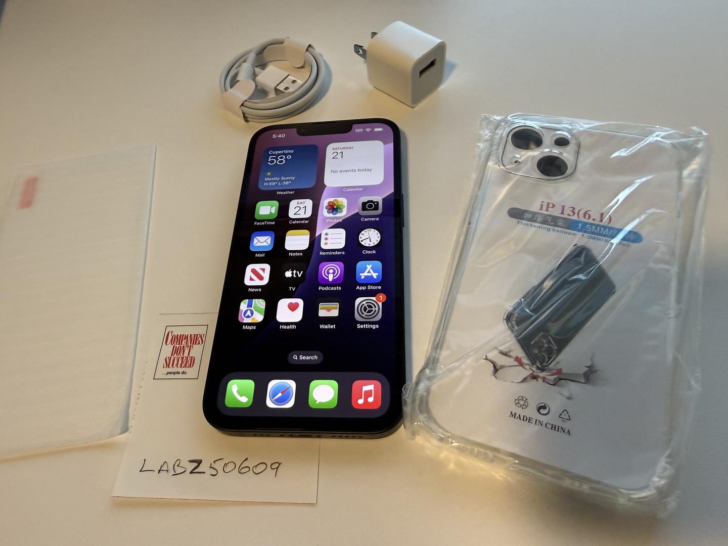 Please note: this iPhone 13 does not come with its box and accessories. It comes with a complimentary USB cable, wall changer, new screen protector, and a new clear case. Please see images for details.