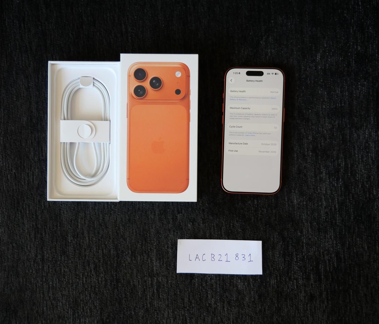100% battery health, only 52 charge cycles