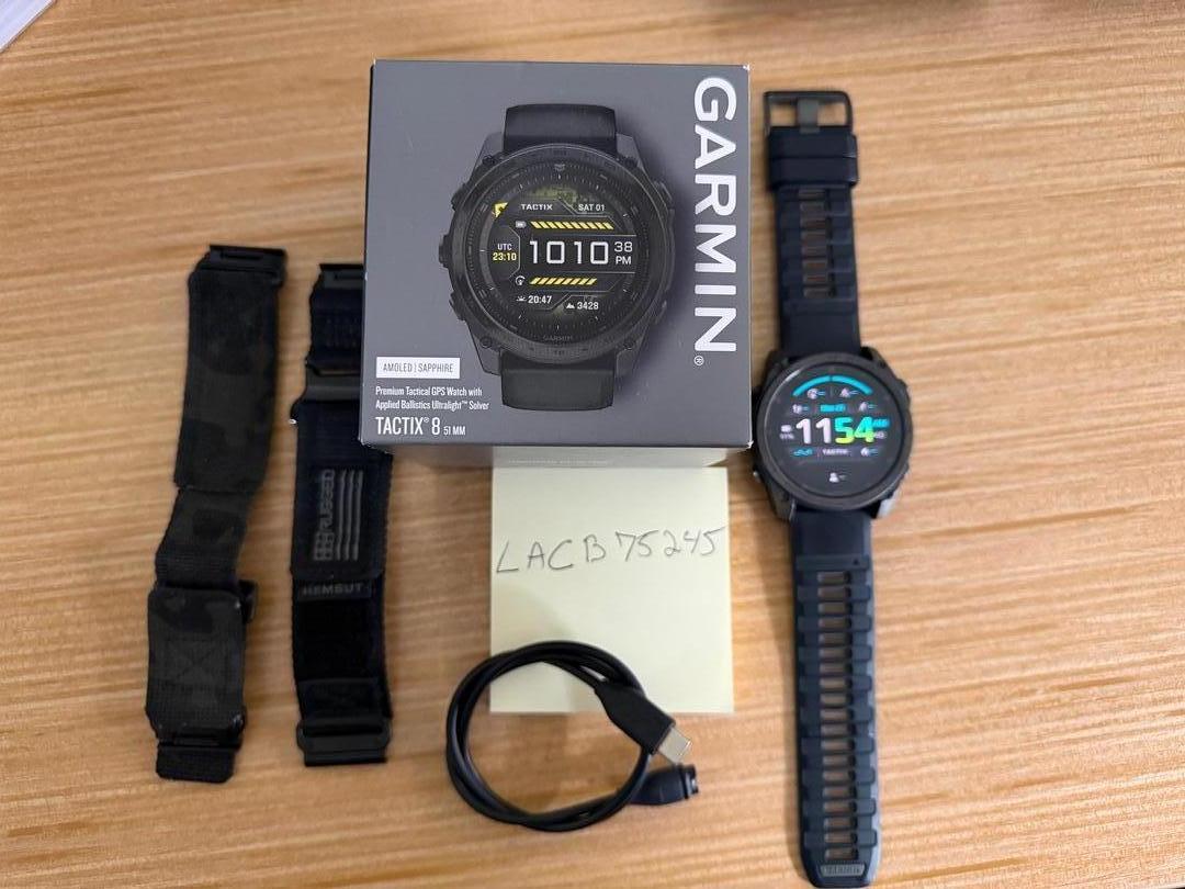 Excellent condition Tactix 8 - 51mm AMOLED. Works like new, has only minor wear around the bezel and is in near new condition. Crazy battery life. Includes original box, Garmin strap and charger. I'll throw an extra off brand band in the box as well. I will ship UPS and most the time I can get it out the same day.