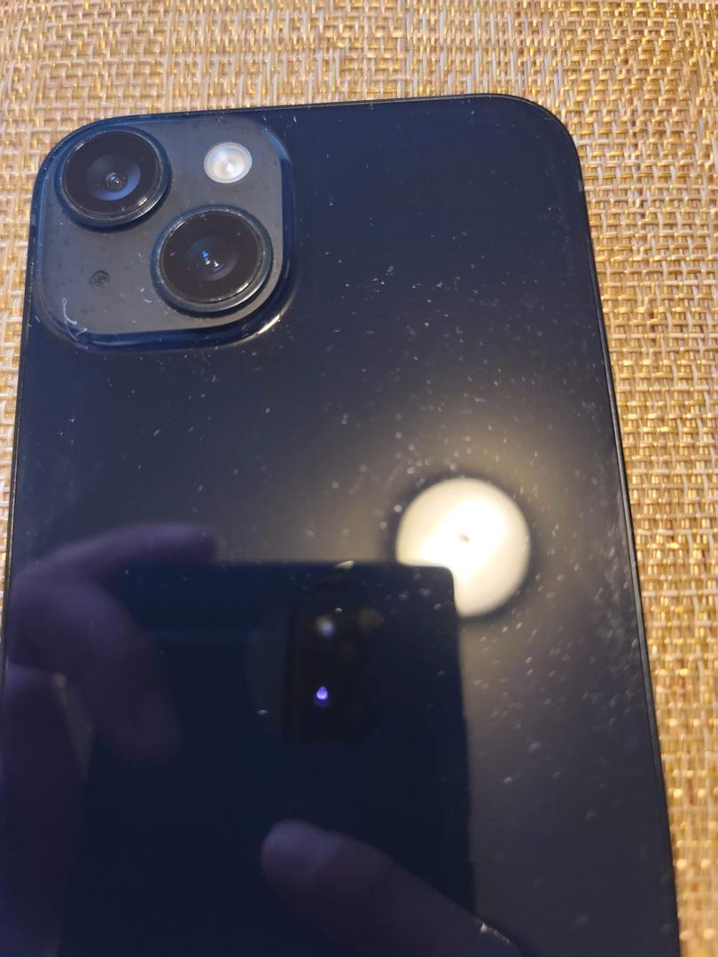 iPhone 14 in Midnight color. 87% Battery Health. Unlocked. Comes with Airpods, 2 cases, and charging cable.